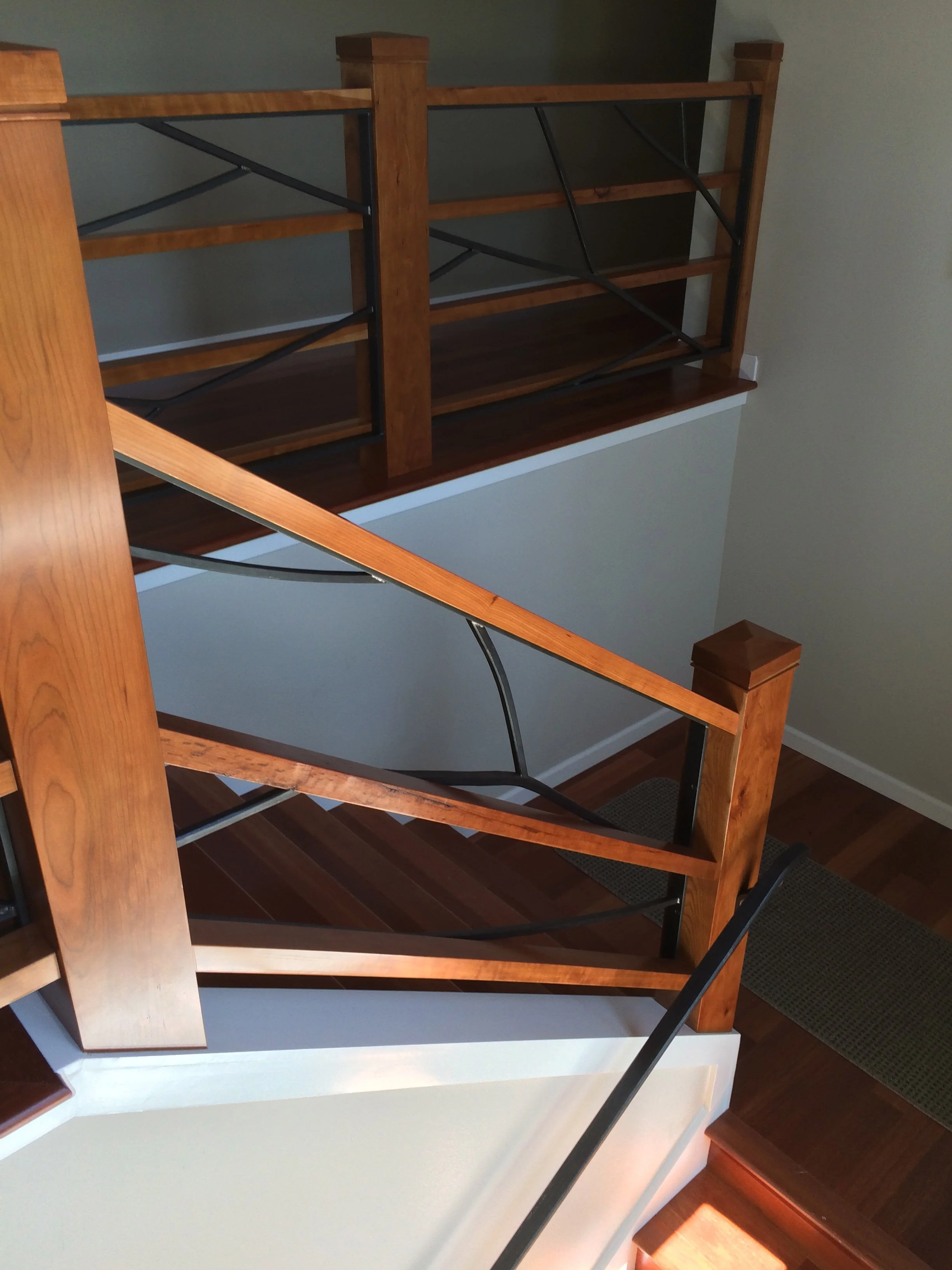 These forged steel infill panels for this cherry wood railing explores the rhythm and character of tree branches.
